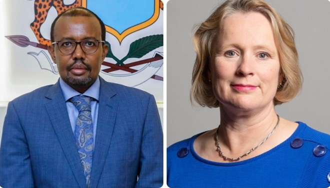 (SLT-Muqdisho)-Wasiirka Arrimaha Dibadda iyo Iskaashiga Caalamiga ah ee Soomaaliya Cabdisaciid Muuse Cali ayaa maanta khadka telefoonka wada-hadal kula yeeshay Wasiirka arrimaha Afrika ee Boqortooyada Ingiriiska, Vicky Ford.